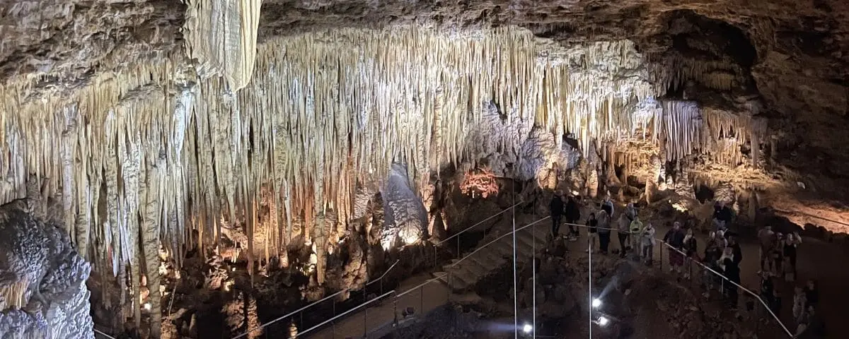 Almost the entire guided visit is conducted aboard a small train that travels through the cave. The visit is in French, but there is documentation available in English.