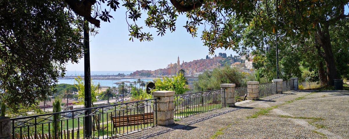 Up on the heights of the old town, right by the entrance to the cemetery, there’s a viewing deck where you get a view of the old town and Menton’s bay.
