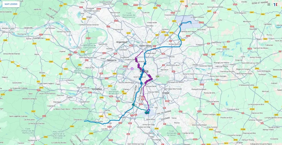 | Metro 14 | €13 | 12 Stations | 15 to 30min | 2 to 5min | Metro‚ RER |